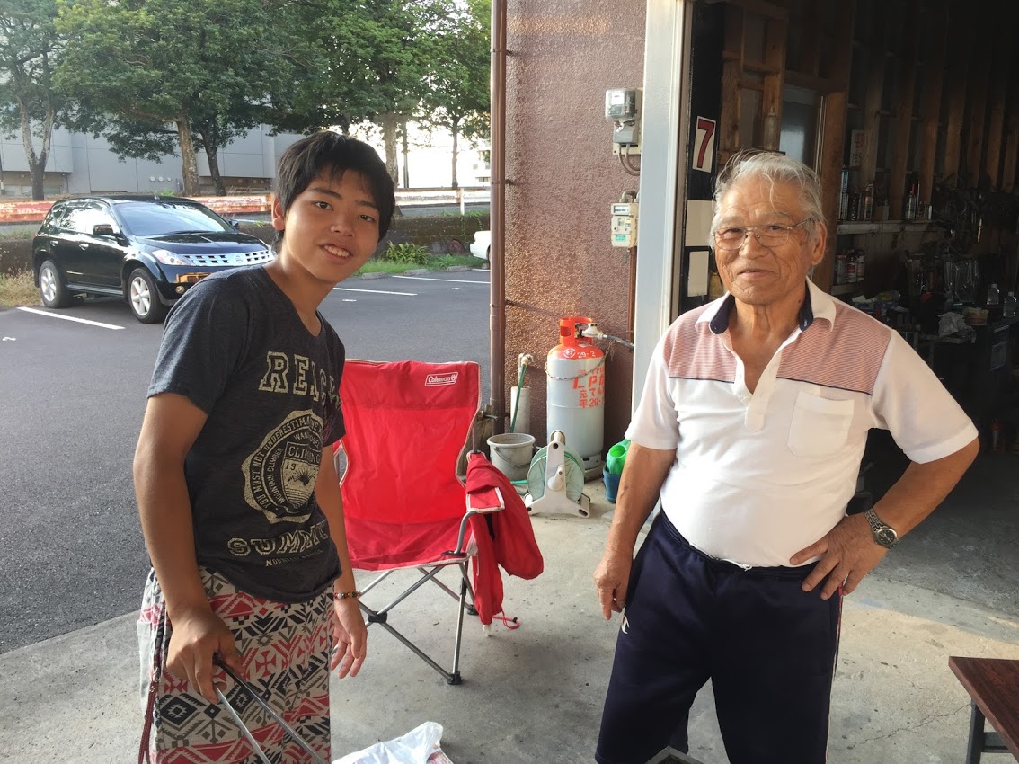私から見れば、父親、息子、私と3世代で道具を設置して、みんなで火を起こして、本当に楽しい限りです。