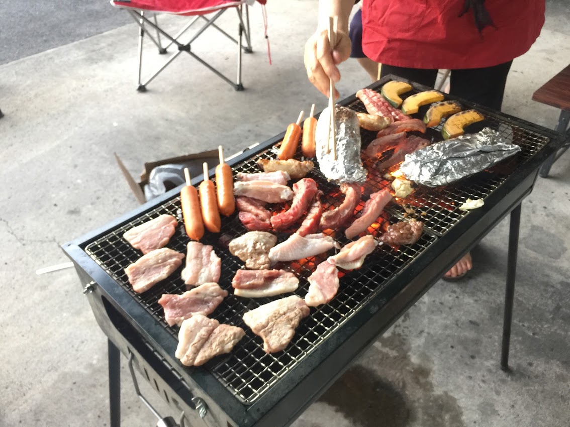 バーベキューコンロは、大型のものを前回購入していたので、それが大活躍です。