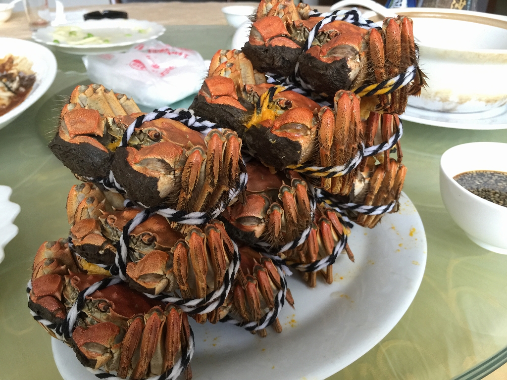 このお店の横の池で取れる蟹だけが、本当の上海蟹らしいのですが、さっきまで生きていたのを蒸すんですね~