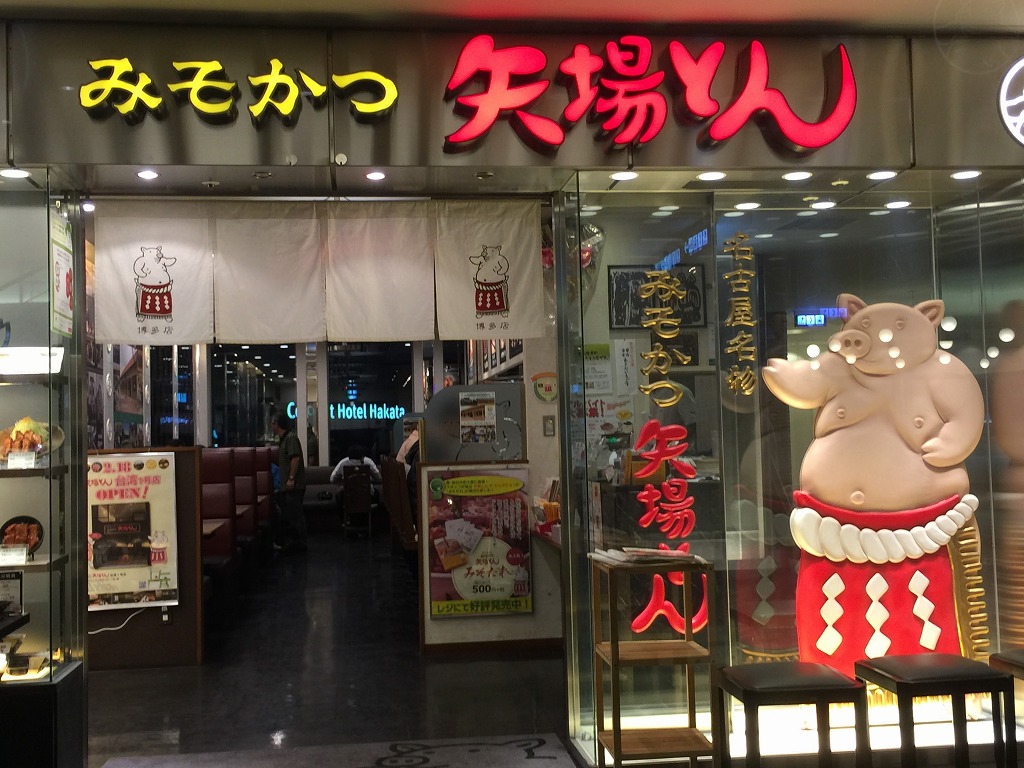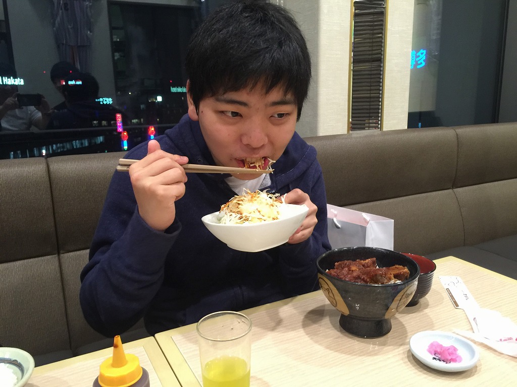 みそかつ矢場トン (博多駅@くうてん) 更新日: 2016年7月1日 昨日は、ステーキでしたが、今日は長男もそろって「みそかつ」です。 名古屋の有名なお店だそうですが、博多駅のビルに出店していました。 私も初めて入ります。 長男は、学校の帰りに合流したので、学生服。 なんかしら、Vサインです。(笑) 次男は、サラダからスタートです。 まあ~「みそかつ」自体をあまり食べたことないのですが、普通ですかね~