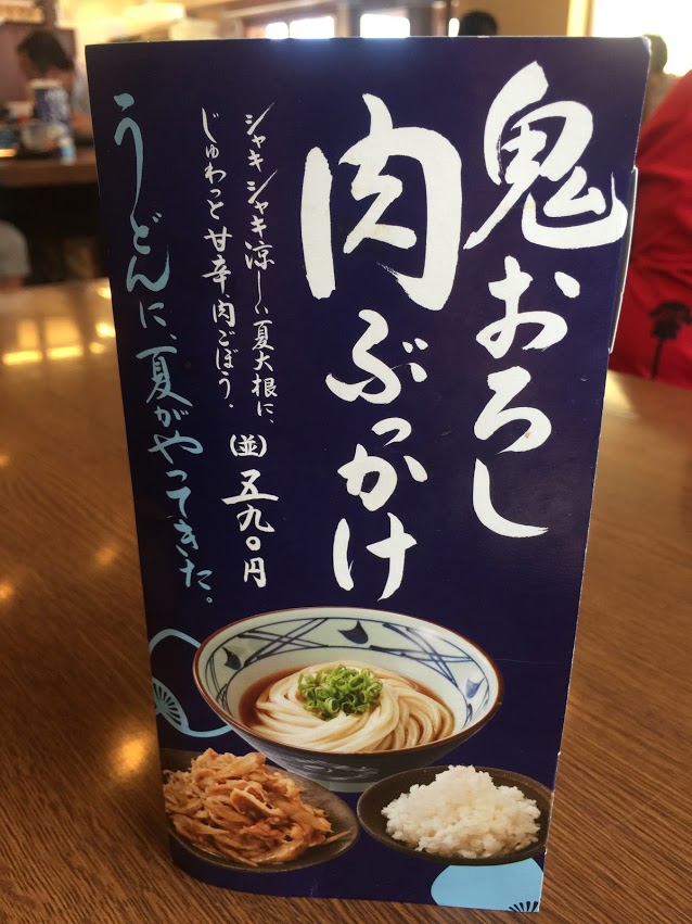 鬼おろし肉ぶっかけうどん 更新日: 2015年10月18日 最近、テレビのCMで武井壮がうどんの宣伝をしていて、超~気になっているメニューがありました。 「鬼おろし肉ぶつかけうどん」なんですが、CMや写真を見るとおいしそうですよね~ で、丸亀製麺に来て注文しました。 いや~思いのほか、思っていた感じに近いです。ちなみにネギは、自分で入れる事ができる、入れ放題なのでたくさんいれました。 うどんに肉をのせ、さらに鬼おそろし(大根おろし)をのせると完成! まあ~味は普通でした。