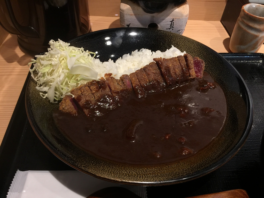 オススメのランチ定食などありましたが、横の先に来た人への説明とか聞いていると、なんかややこしそうだったので、牛カツカレーにしました。